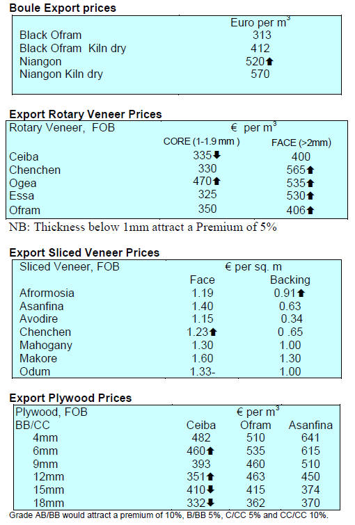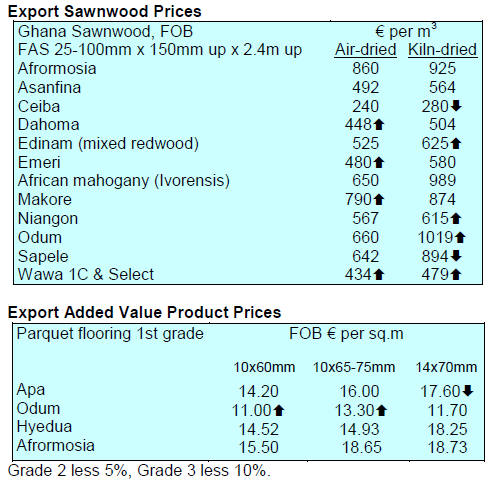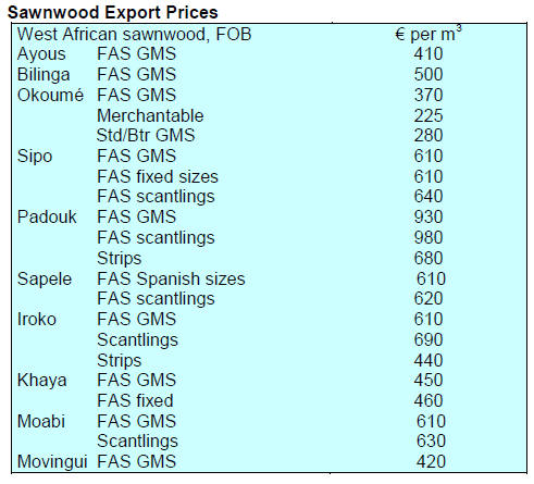 Demand was particularly firm for sawnwood and finished