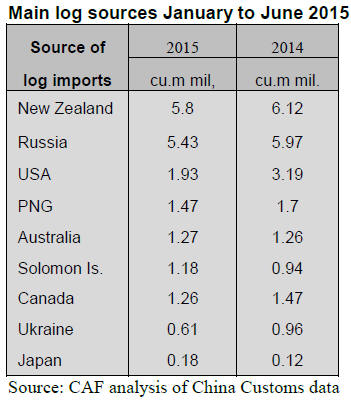 In the first half of 2015 China imported logs from mainly