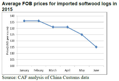 price for imported softwood logs fell 19% to US$129 per