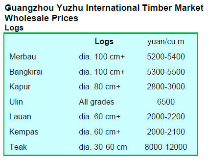 imports of hardwood logs were generally flat.