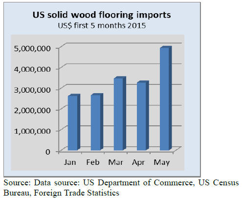 US hardwood flooring imports grew by 51% in May from