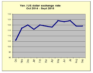 In late September the yen strengthened against major