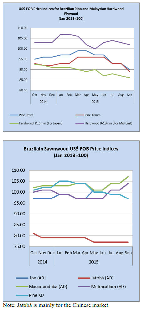 September pine plywood exports fell 4.0% but in terms of volume the reverse