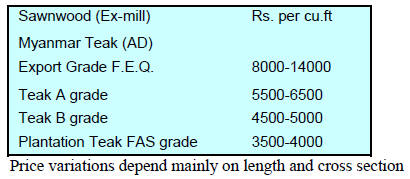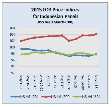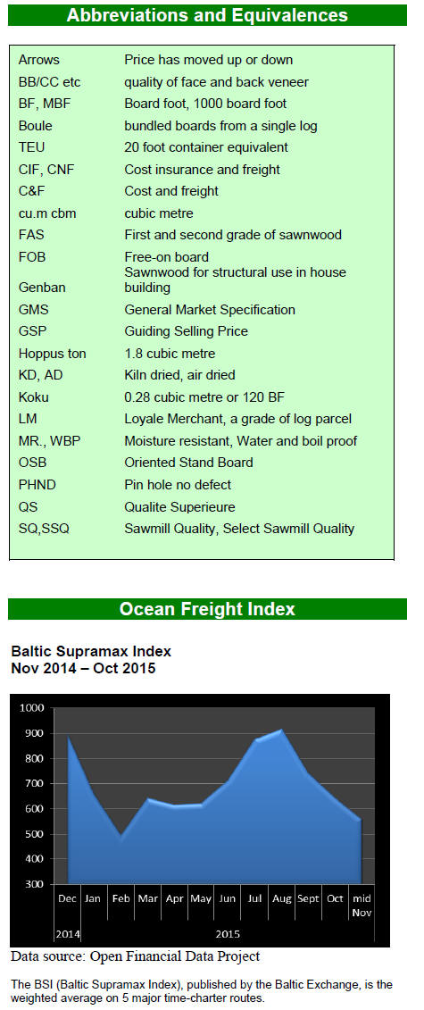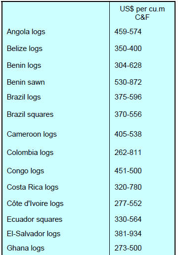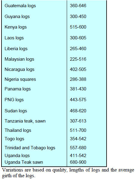 Taiwan (9mm and up) US$ 410/cu.m FOB