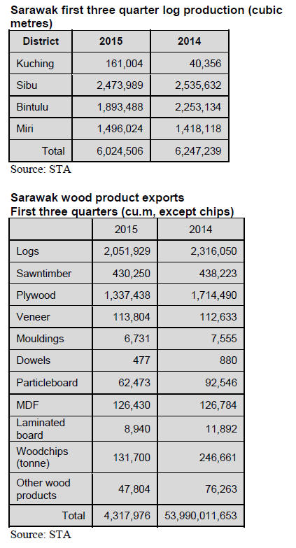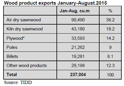 15%. Up to September this year sawnwood exports have