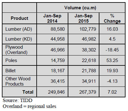 The third quarter 2015 timber export report has been
