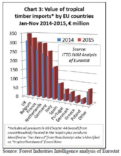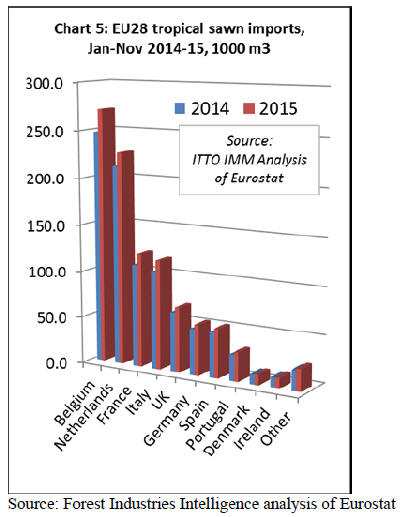 Belgium was the largest single importer of tropical sawn