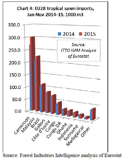 EU tropical sawn imports exceed 1 million cu.m in