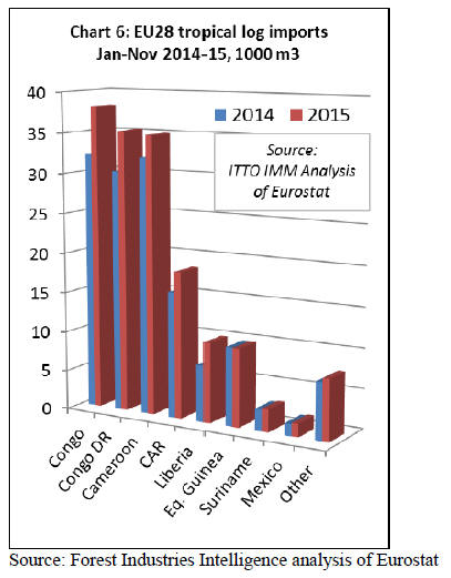 European imports of tropical logs gained ground in the