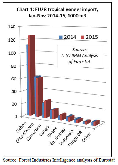In addition to Gabon, EU imports of tropical veneer also