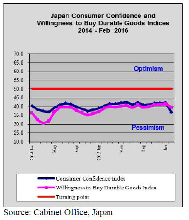 Japan’s consumer confidence index for February fell to a