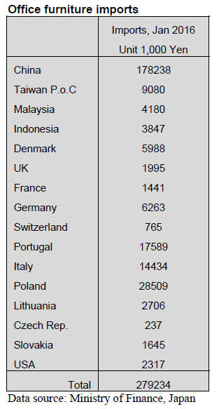 Year on year January 2016 office furniture imports were