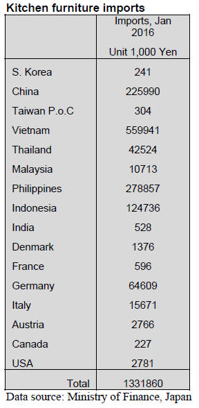 There was an increase in kitchen furniture imports in the