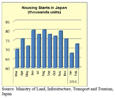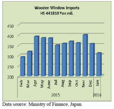 Year on year, Japan’s January 2016 wooden window