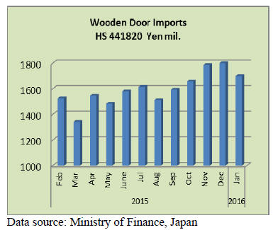 Year on year January 2016 imports of wooden doors were