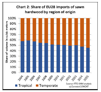 EU sawn hardwood imports fell from 48% in 2014 to 46%