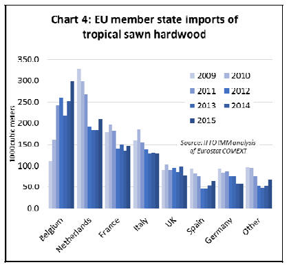 The rise in EU tropical sawn hardwood imports was owing