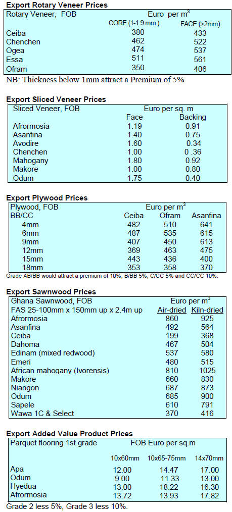Ghana¡¯s overland wood product exports are priced either