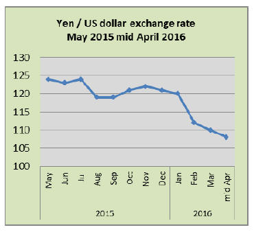 A strong yen hurts Japanese exporters and puts downward