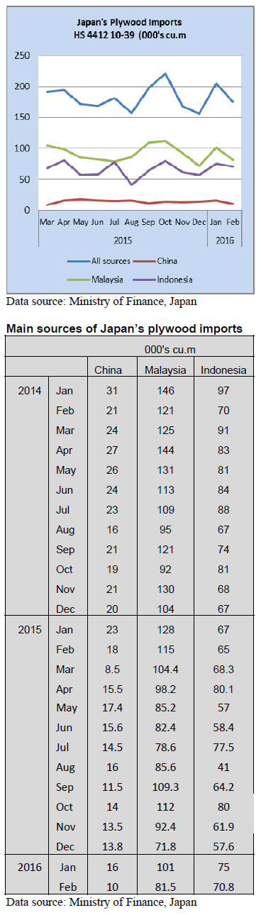 plywood orders in Japan are weak.