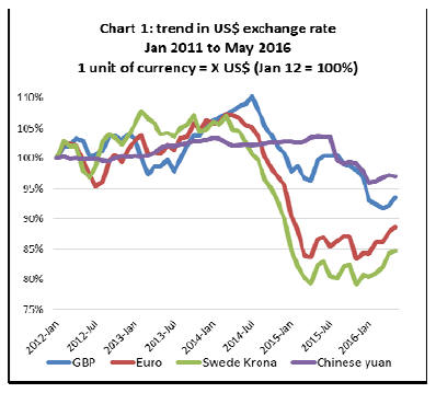 euro throughout 2014 and 2015 but the rate has been