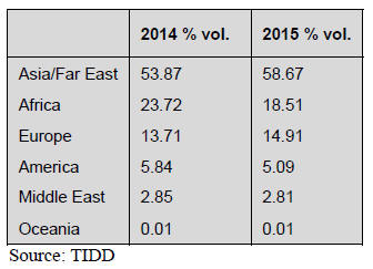 were Asia (59%), Africa (19%) and Europe (15%) as