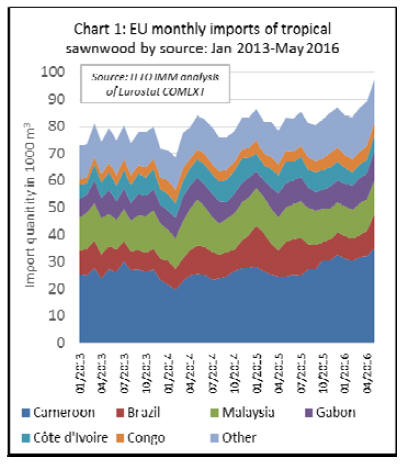 The rise in EU imports of tropical sawnwood in the first