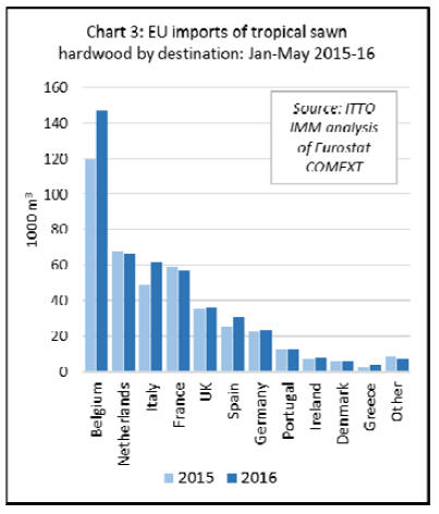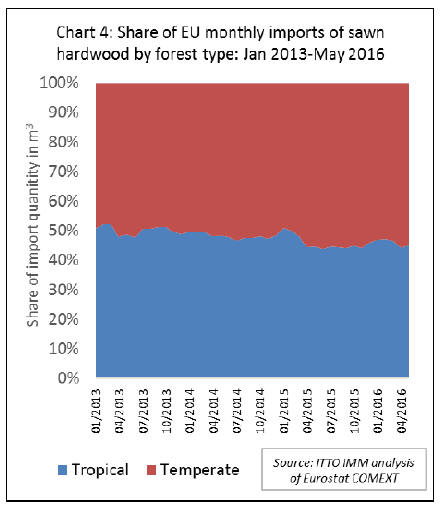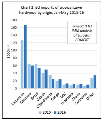 EU imports of tropical sawnwood have continued to