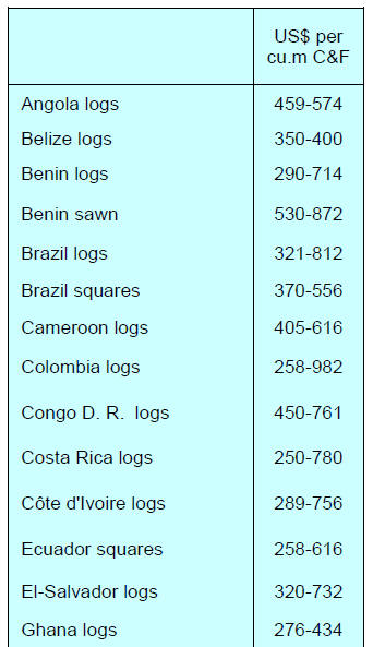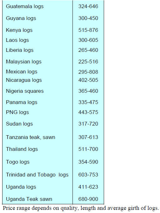 Teak, rosewood, papao, wawa and ceiba were the leading