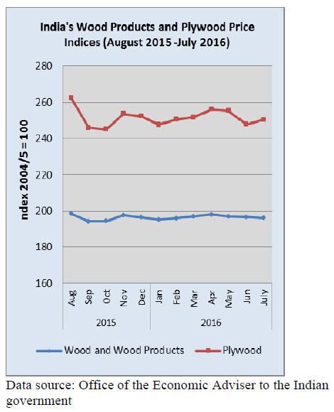 In July 2016 exports of wood products totalled US$201.1