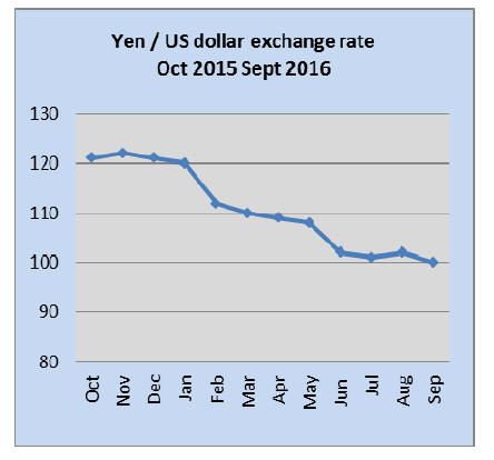 At the end of September the yen was at just over 100 to