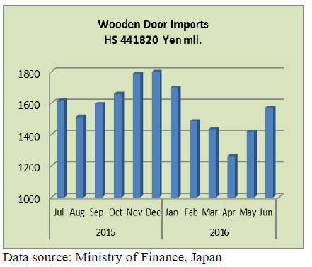 Japan’s first half 2016 wooden door imports were down