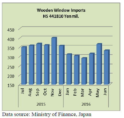 First half 2016 imports of wooden widows into Japan were