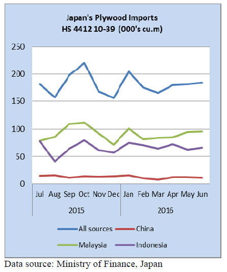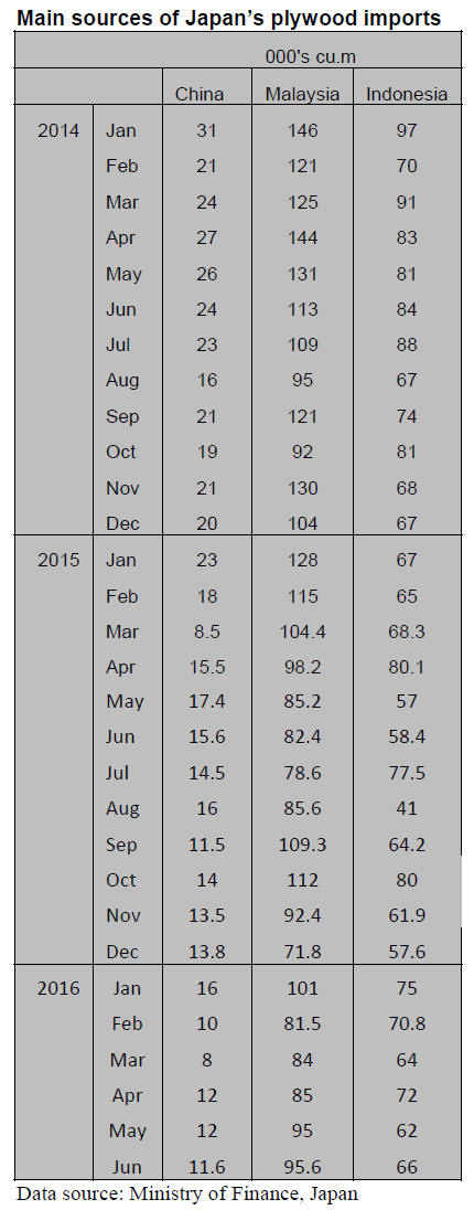 Japan’s first half 2016 plywood imports were down 6%