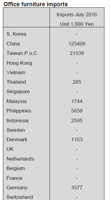 Year on year, imports of wooden office furniture in July
