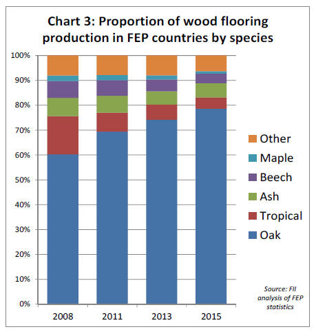 Oak-faced flooring accounted for 78% of all wood
