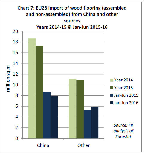 In the first half of 2016, EU imports of wood flooring