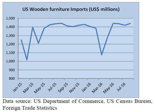 Wooden furniture imports were almost unchanged in