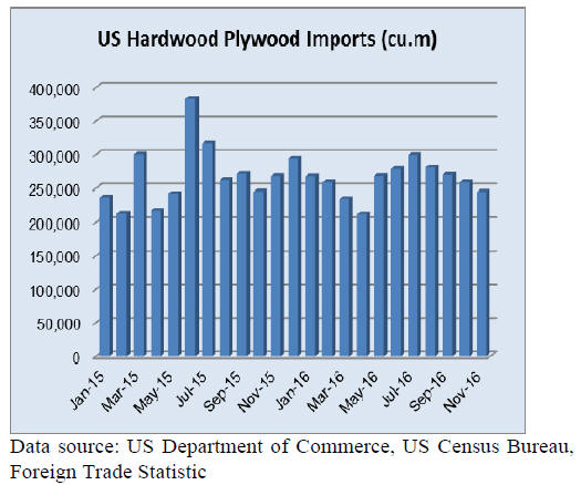 Plywood imports from Indonesia declined to 18,981 cu.m.