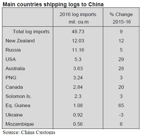 New Zealand was the main log supplier to China in 2016