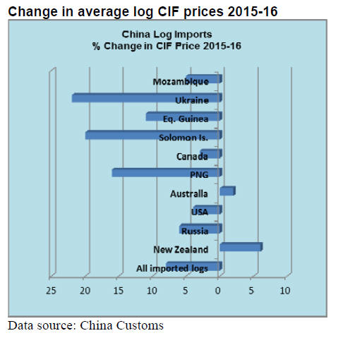 Average prices for imported logs from New Zealand rose