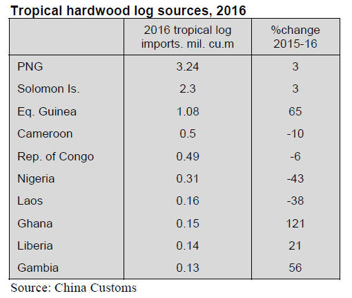 China imported tropical logs mainly from Papua New