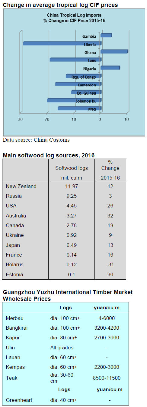 tropical logs for China. However, China¡¯s log imports