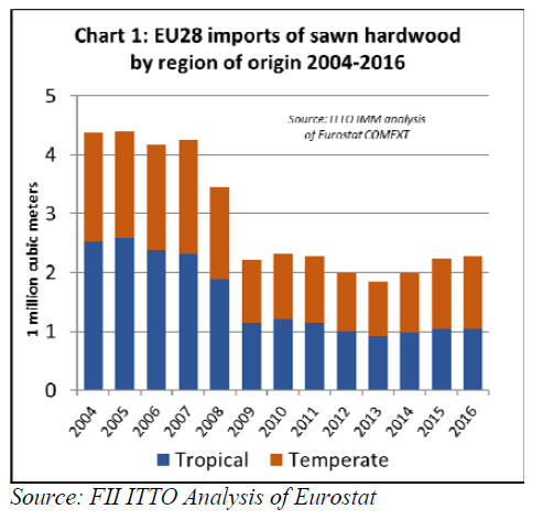 Eurostat data suggests that EU sawn hardwood imports