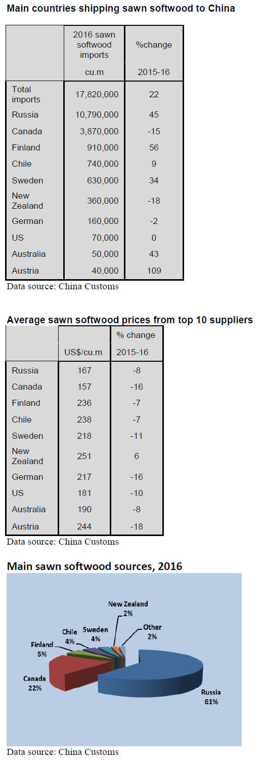 Russia was the main sawn softwood supplier to China in