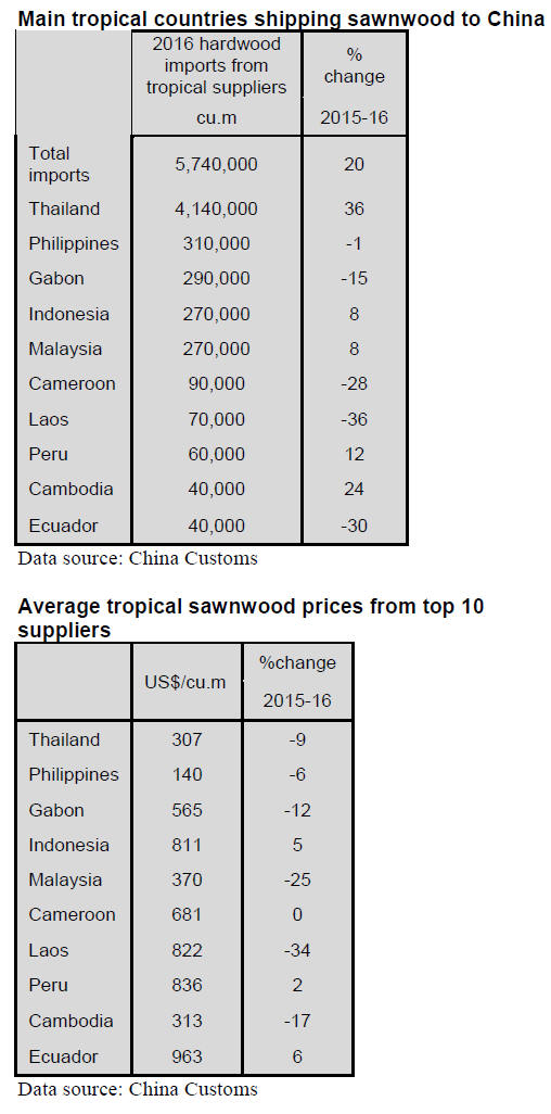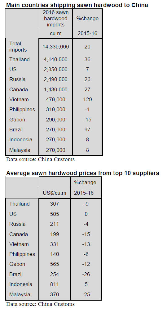 Substantial growth in 2016 sawnwood imports