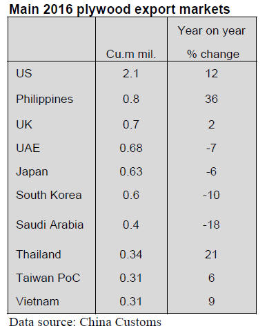 Plywood dominated wood-based panel exports in 2016