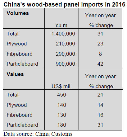 China¡¯s wood-based panel imports in 2016 were 1.4