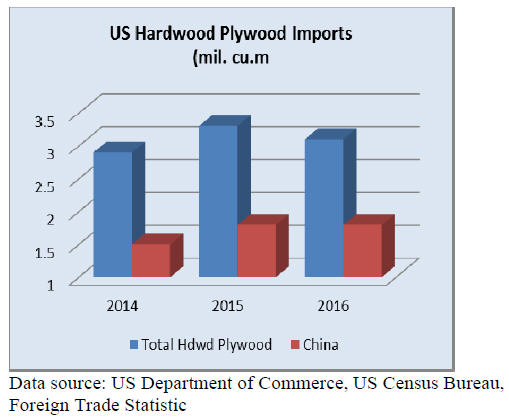 US imports of hardwood plywood declined by 4% in
