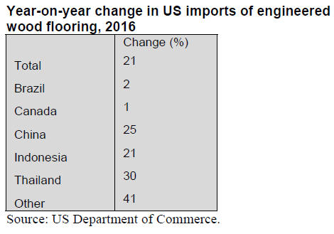 US imports of hardwood flooring fell by 15% in 2016, to